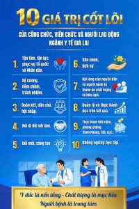 10 giá trị cốt lõi của công chức, viên chức và người lao động ngành Y tế Gia Lai gồm: